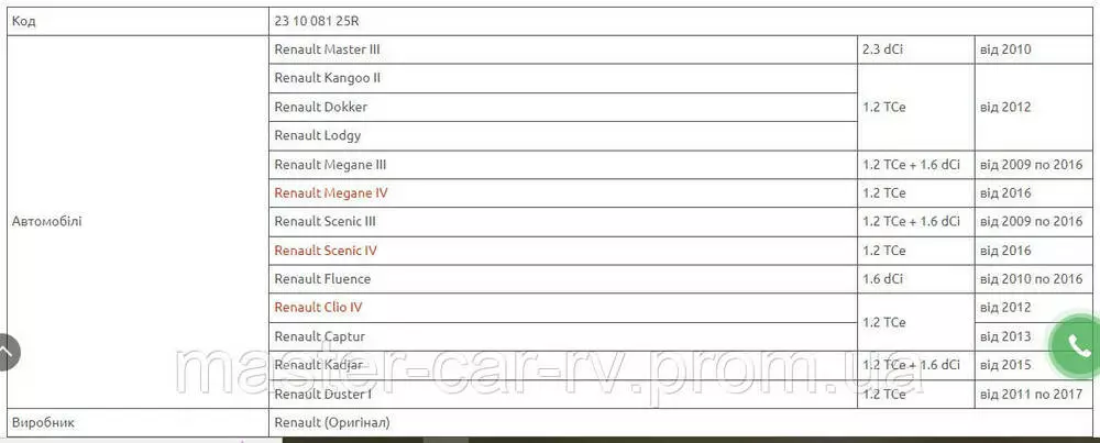 - Совместимость с маркой: Renault